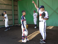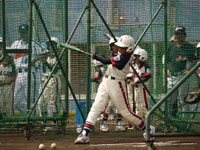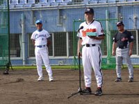 “硬式野球”はボールが硬く重いので、ジュニアの皆さんには過酷です。それだけに怪我をしないよう準備運動などを徹底してする必要があります。講師よりピッチング・バッティング・守備など基本的なことを、教わっていました。 |