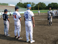 ・今年も“暑い夏”がやってきました。 西条市次世代育成支援スポーツ事業“硬式野球教室”が、西条リトル及び小松リトル両チームより92名参加のもと、西条ひうち球場で 8月2日開催されました。 |