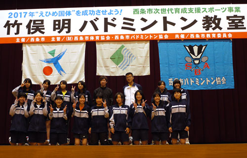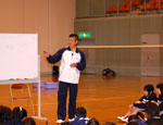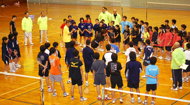 ・今年は、“サリム・サメオン”氏に代わって、日本人でジュニアの指導を熱心にして頂いている竹俣 明氏を講師としてお迎えし、“バドミントン教室“を開催させて頂きました。 昨年の北京オリンピックでは、女子のダブルスチームが活躍し、盛り上がりましたが、西条市のジュニアの皆さんも、このような教室を通じてレベルアップして欲しいと願っています。 ・今回は受講生として、市内小中学校より81名の参加を頂きました。 ・竹俣講師の指導は、ジュニアの皆さんにとって、バドミントンを身近で楽しめるような、丁寧な指導をされていました。 ・どちらかと言うと、見た目は楽しそうですが、実はハードなスポーツで、瞬発力や機敏性そして手首の強さやスタミナも必要です。えひめ国体開催に向けて、競技レベルのアップはもちろん、心身も強くなって欲しですね。 ・教室の最後に、受講生を代表して西条JBCの“曽我部 幸穂”さんがお礼の言葉を述べ終了しました。 |